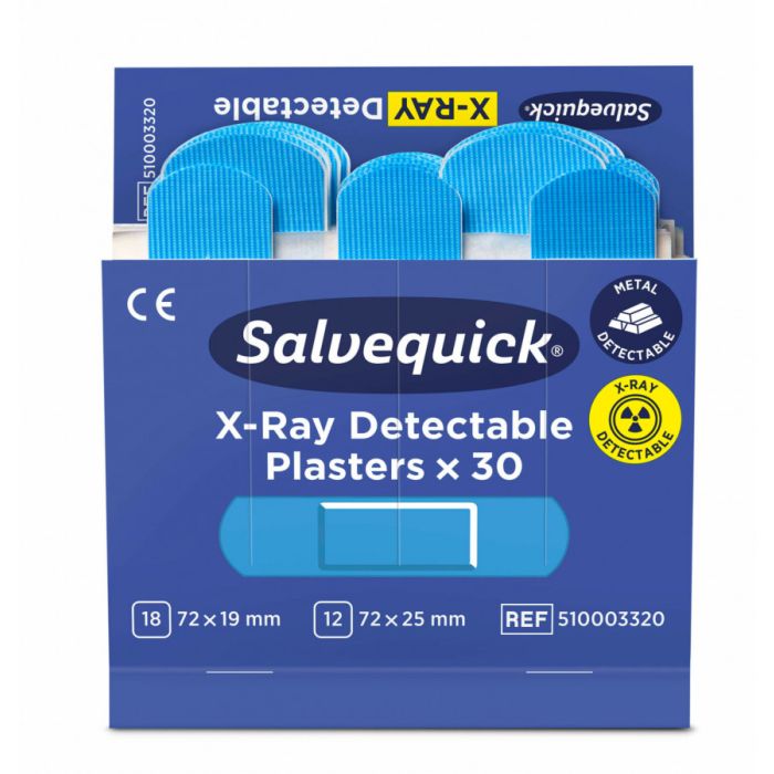 Salvequick sinised, röntgeni ja metallidetektoriga avastatavad plaastrid on välja töötatud spetsiaalselt toiduainetetööstuse jaoks. Enamus toiduainetetööstuses kasutatavaid metallidetektoreid suudavad selle plaastri leida, sinine värv teeb plaastri ka kergesti märgatavaks. Plaastrid on kõrge kvaliteediga, antiallergilised ja mugavad kasutada.